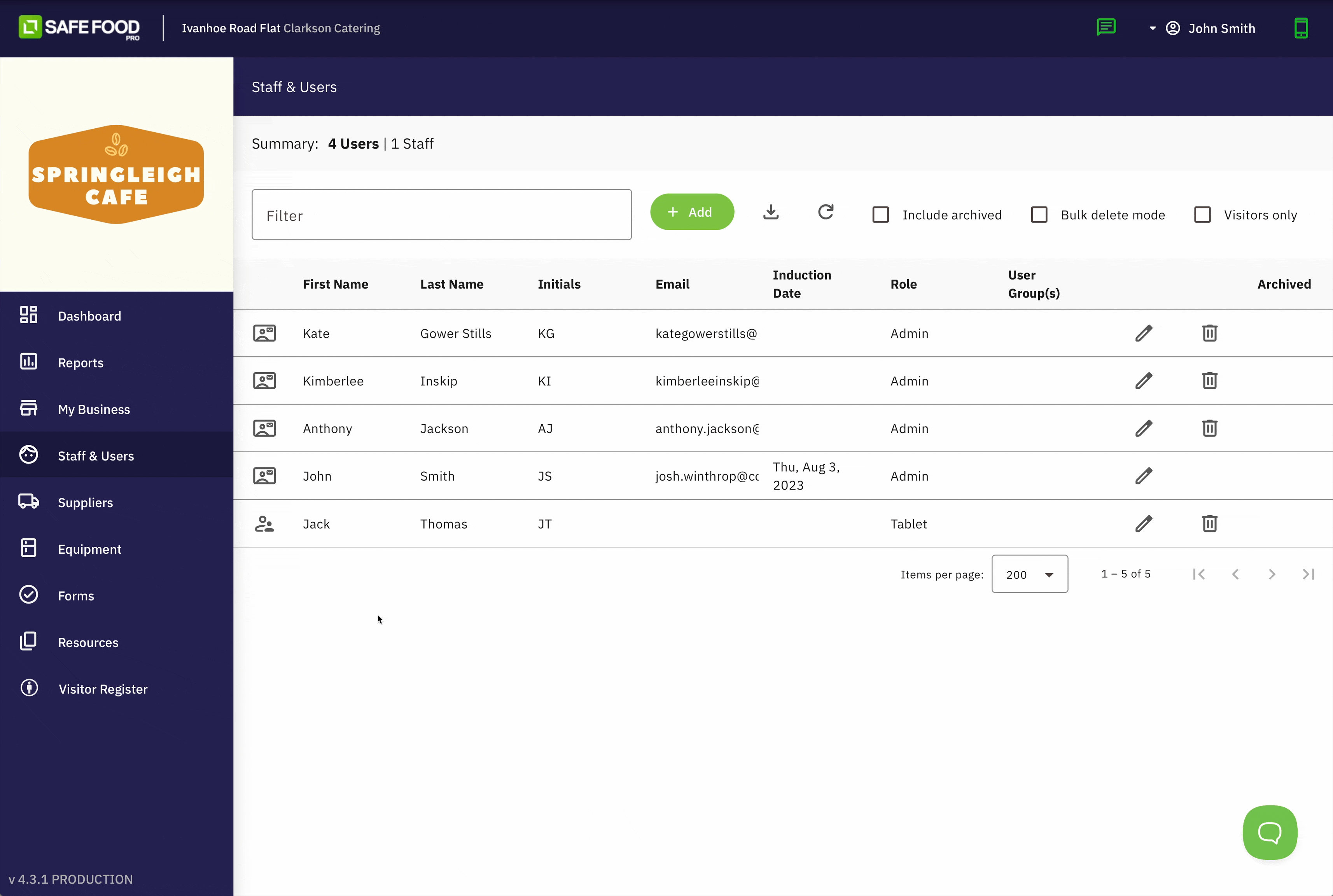 Before you add any people to your account, it's important to understand the two different ways Safe Food Pro manages your team: