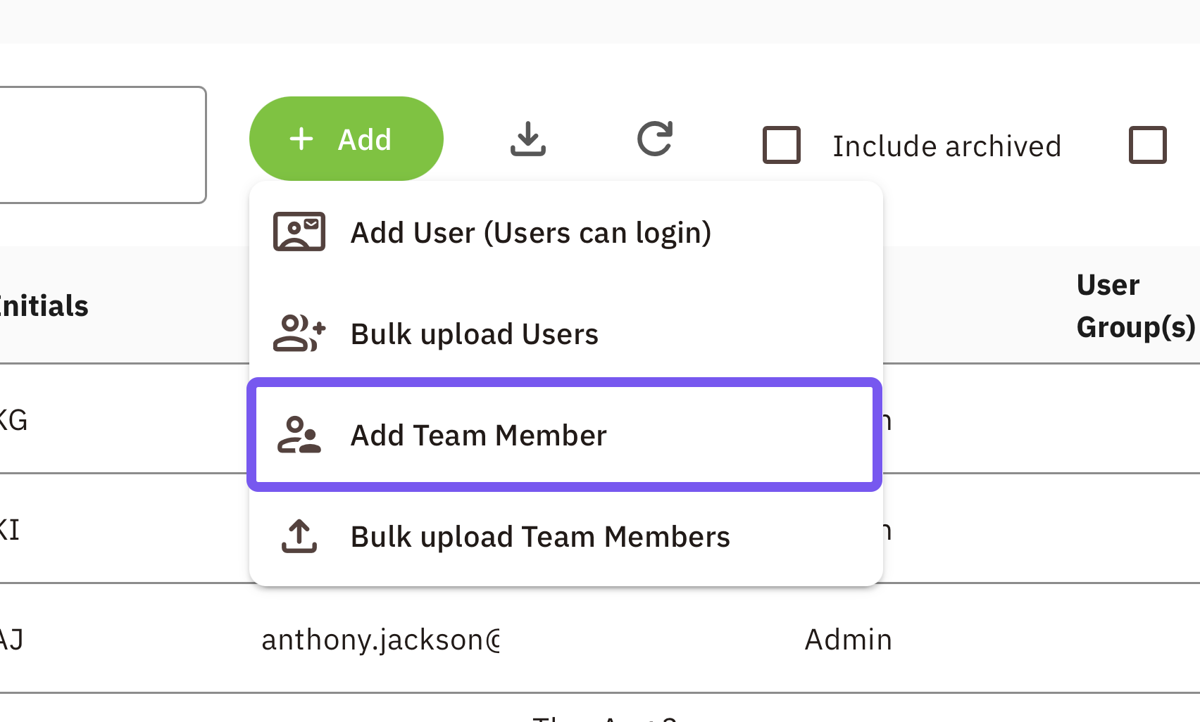 A Team Record is the central profile for every person in your business, whether they log into the app or not. A Team Record add them to your staff list, and allows them to complete forms in the app.