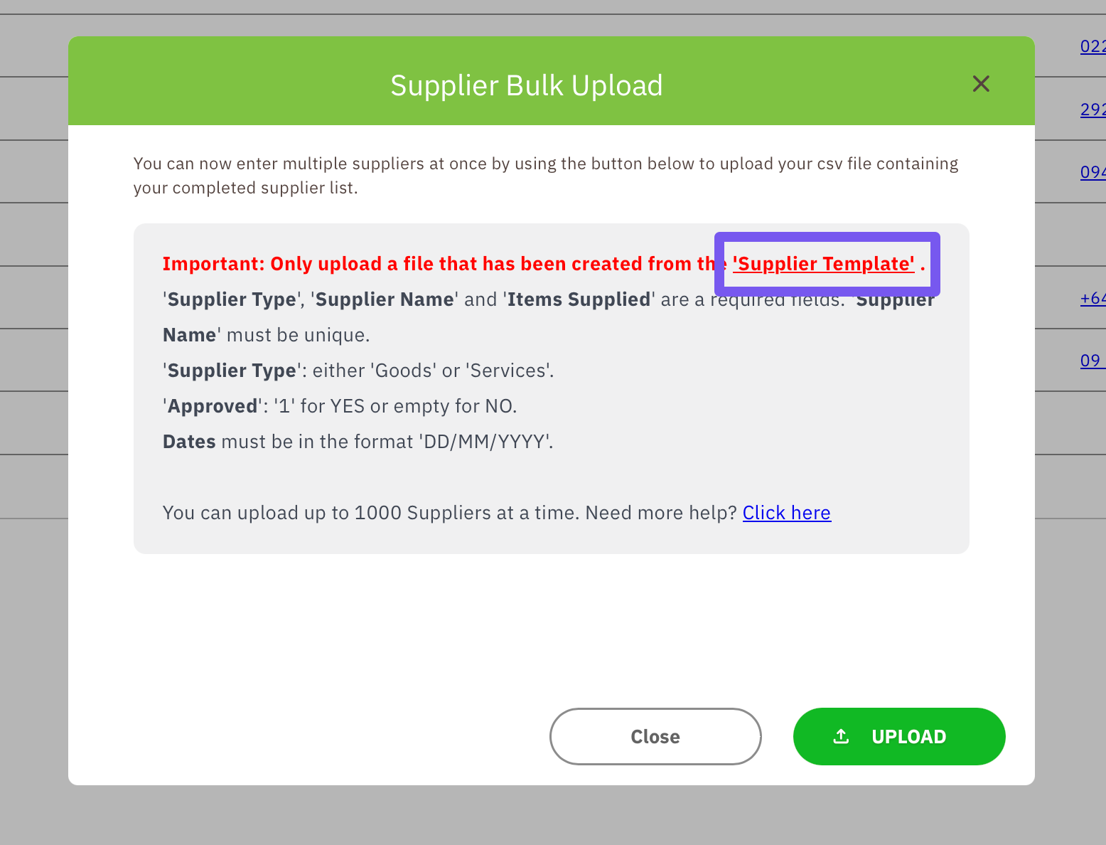 Save time when adding your Staff, Suppliers, or Equipment by Bulk Uploading them using a CSV template