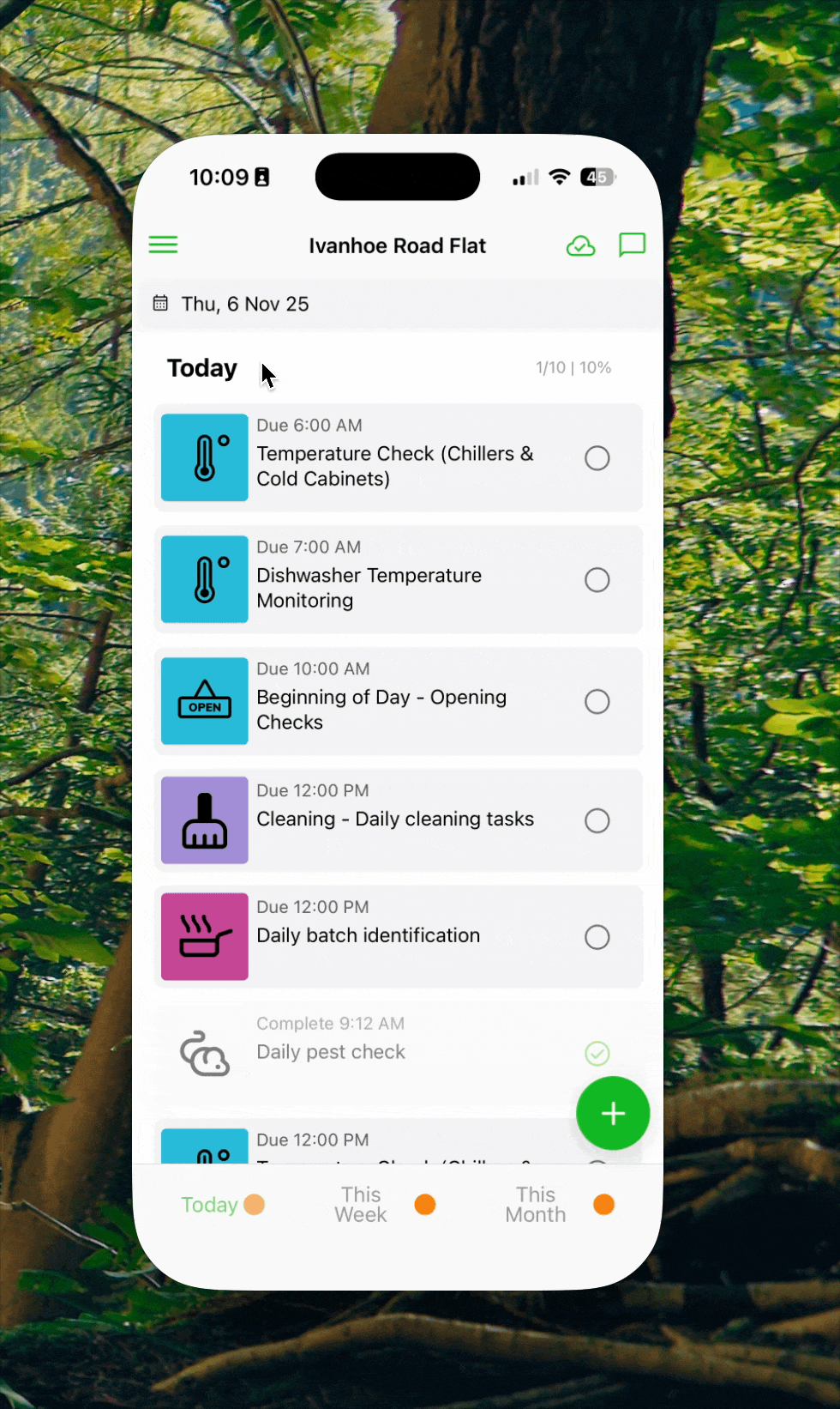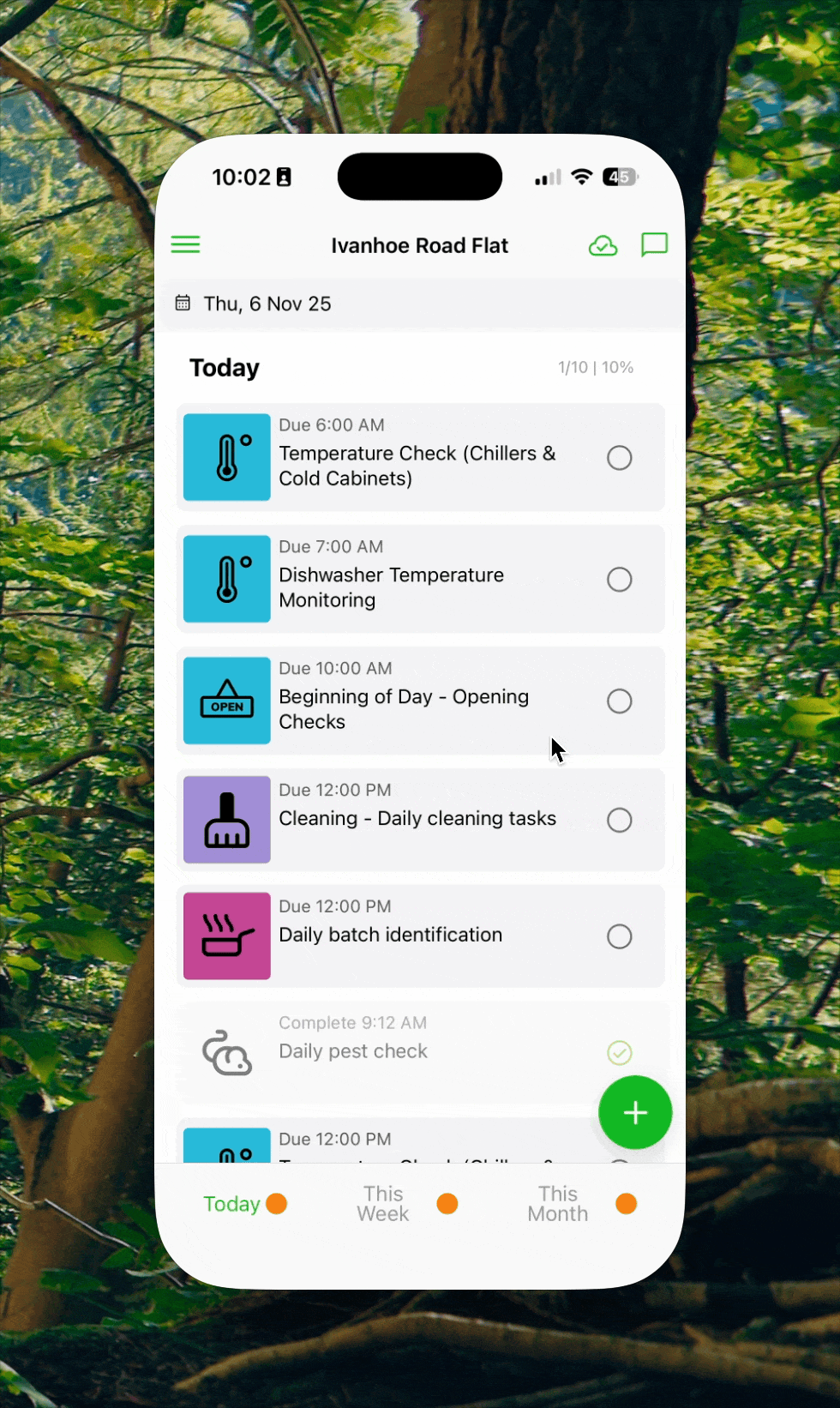 The Safe Food Pro mobile application is the primary tool for your staff to complete and record all daily, weekly, monthly, and ad-hoc food safety tasks.