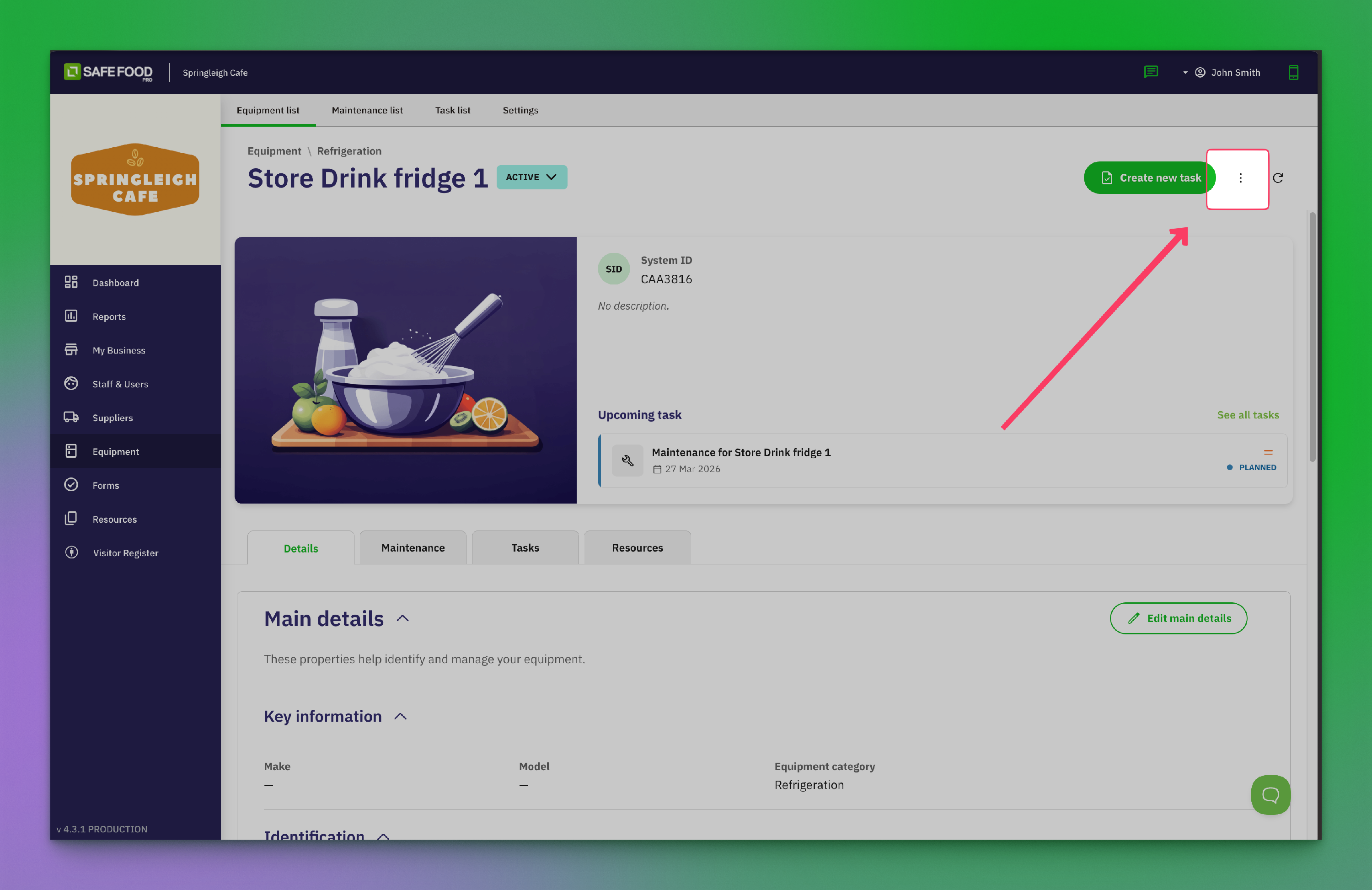 - Tap the Equipment to open its profile (or use the Plus icon to add a new item)