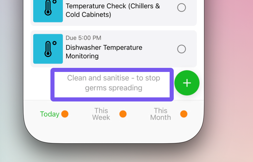 These are displayed at the bottom of the Diary Checklist on your Safe Food Pro Tablet/Phone App and rotate between the nudges as you use the application.