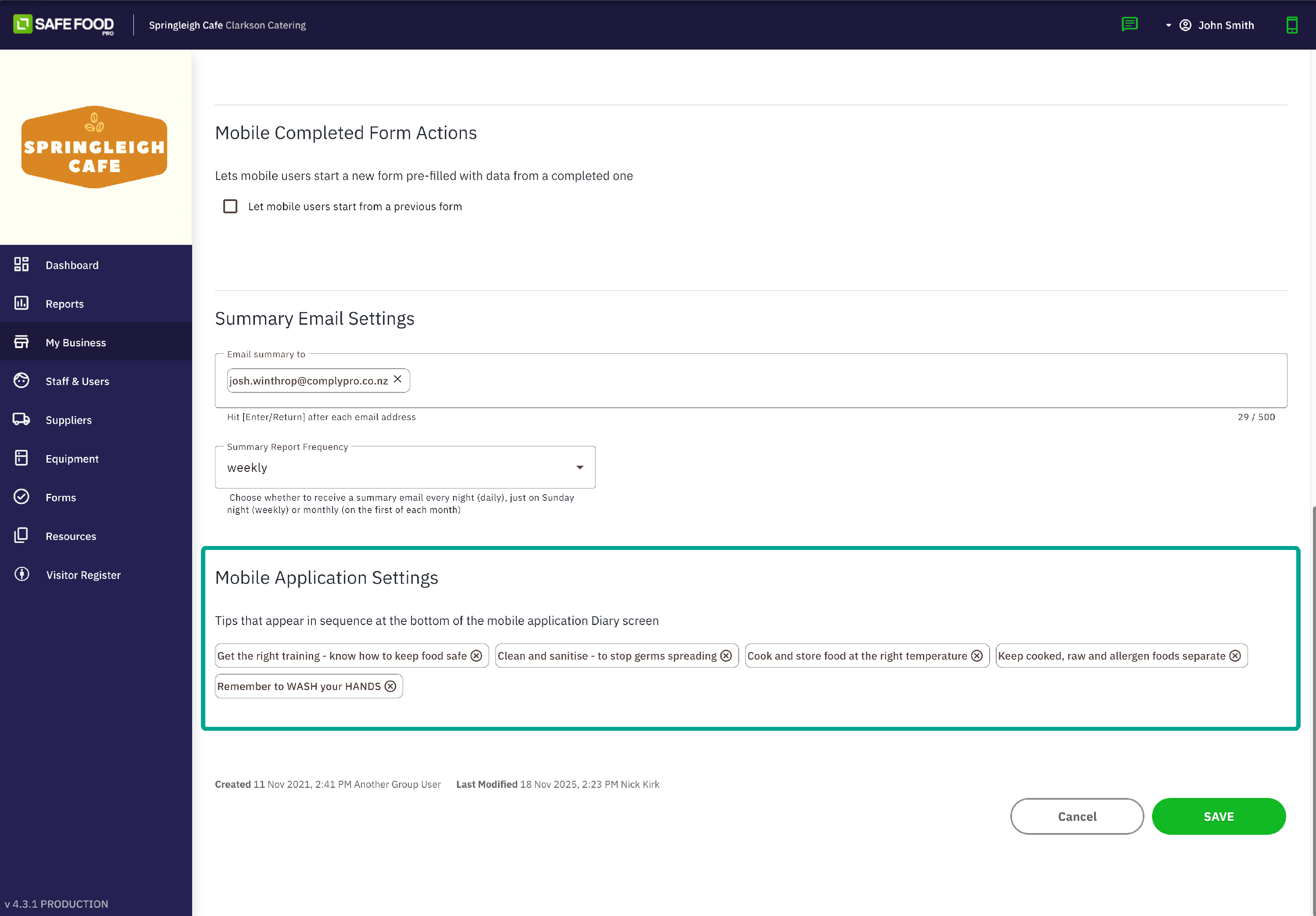 Note: If you delete all your nudges, this will reset them back to the Safe Food Pro default nudges.