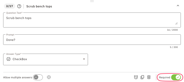 Question - Add question text, and an optional prompt and select your answer type. You can also make this a required question by clicking the toggle in the corner.