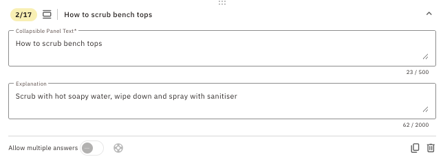 Collapsible Panel - The Collapsible Panel can be used to include instructions for your team. Also, if you have a large explanation, the collapsible panel can hide or reveal it when needed.