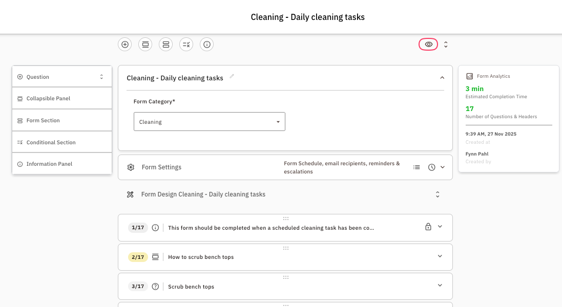 Creating custom forms is crucial in supporting daily tasks, assessments, and record-keeping necessary for Food Safety. You can utilize the Draft Mode feature to test newly designed forms before publishing them. However, once the form is published, you cannot use the draft mode anymore.
