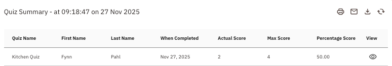 - You will see all the quizzes they have completed