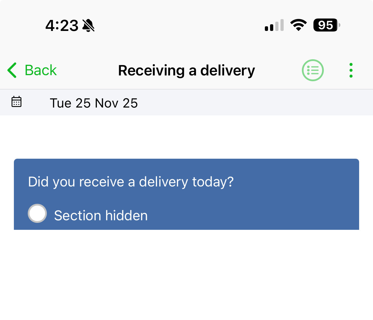 E.G: If your team keeps forgetting to complete the Receiving a Delivery Form. All you need to do is add a Conditional Section to your Receiving a Delivery Form and schedule it to Daily so it can be added to their daily reminders