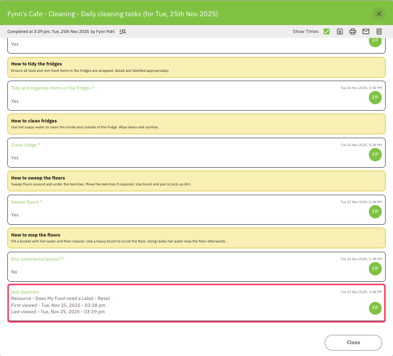 Once the form has been completed you can view the time the resource was first and last viewed: