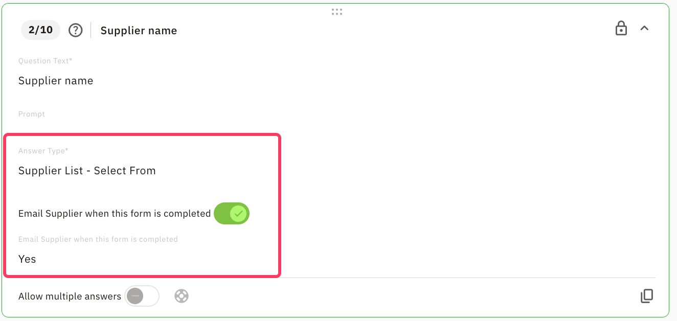 - Make sure you have the required questions in this form, otherwise as soon as you save the form it will be sent to the supplier.