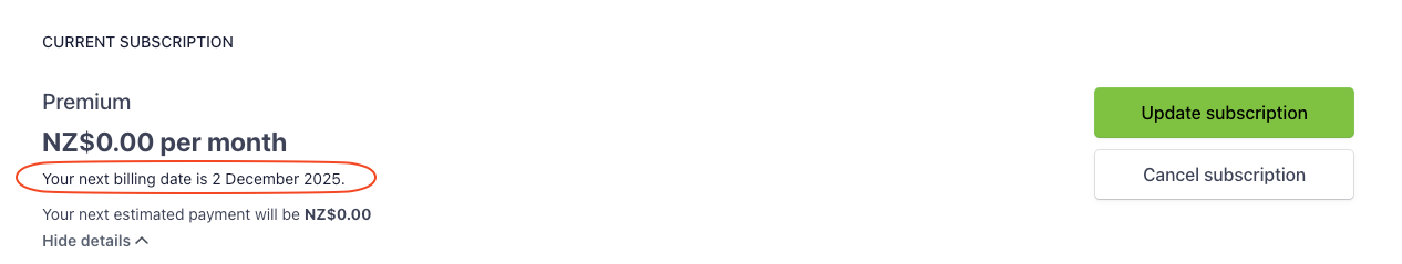 Using an Admin login you will have access to your Billing Portal on the Admin Console (Computer Login). From here you can view when your next payment is due to be billed: