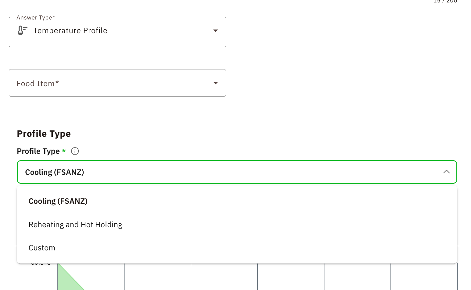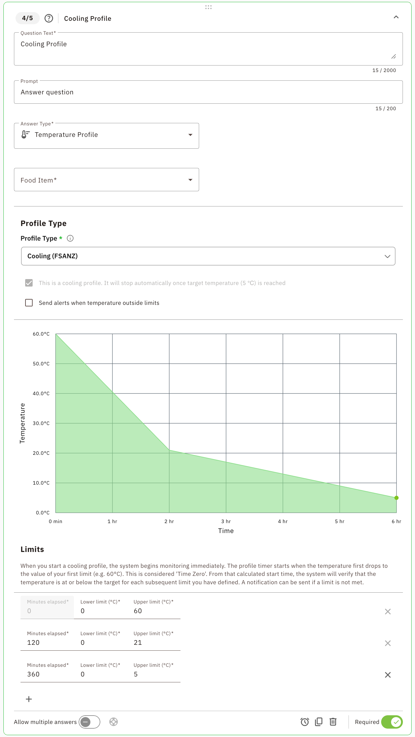 The temperature profile question type enables you to monitor your temperature readings over a set period and receive notifications if they exceed the designated limits.