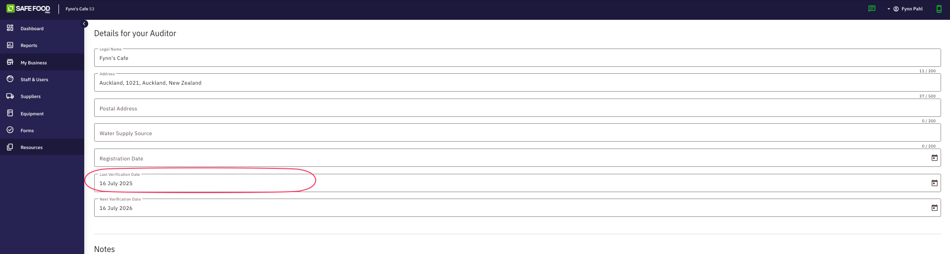 This report displays the information you need to support your organisation verification. Generate this report before your verification to double-check you are all up to date, then email or print it off to give to your auditor. Your auditor can also be set up with an Auditor User access and can view this report by logging into your account.