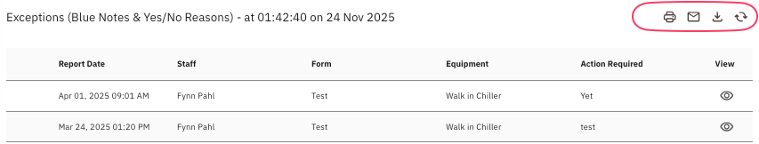 - Exception reports show under forms that have action-required notes added to them or a reason is added to a Y/No (or No/Y) + Reason answer type